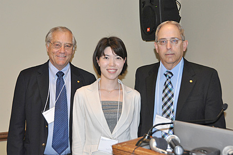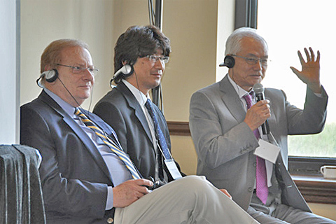 症例ファイルを見ながら熱い議論を戦わす足立敏先生(左), Terrance Bianco先生(中央)とDonald Cronin先生(右)