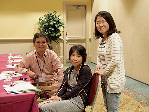 James Sieberth先生の秘書のKimさん(左)、 Jim先生とKimさんお二人には大変お世話になりありがとうございます。Kimさんには池田和己先生のスタッフの宮崎佳さんと大塚香織さん(中央、右)とともに受付を担当して頂きます。よろしくお願い致します。