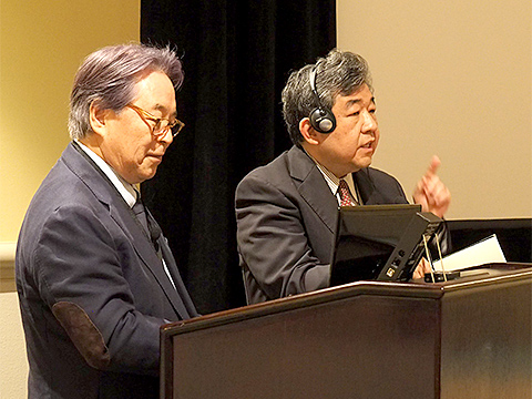 1日目、1番手の発表の足立敏先生と午前中のモデレーターを務める平木建史先生