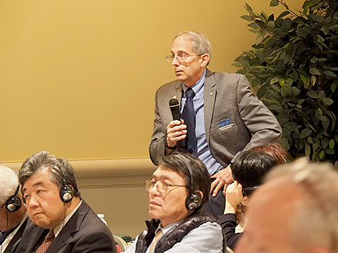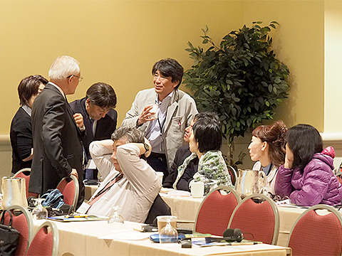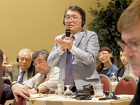 講演を終えた酒井先生 に質問に詰めかける日本のメンバー