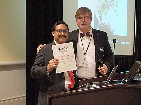 Scot先生(右)からサティフィケートを受け取るGustavo先生(左)