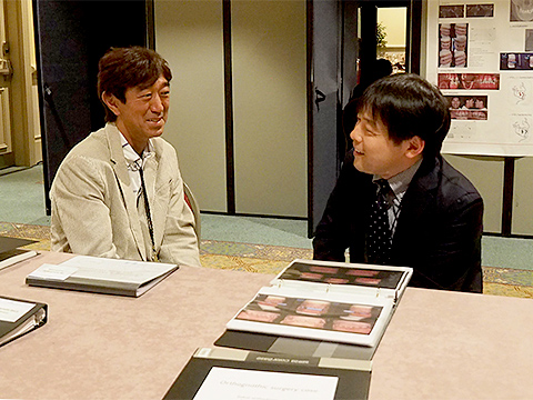 症例ファイルを見ながら歓談の池田先生(左)と Richard 先生(右)