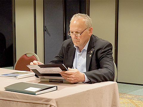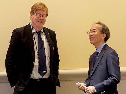 左から日本からの委員の池田和己先生と、アメリカからRichard Christensen先生, James Sieberth先生