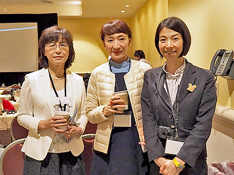 Council meetingの合間で、左から白井先生、日本からの通訳の岩上早苗さん、池田怜仁映先生