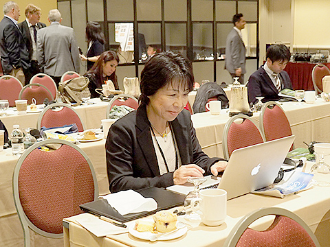 日本からの通訳の岩上さん、スピーカーのプレゼンを修正中?