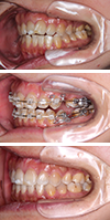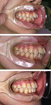 主訴は、上顎前突および上下前歯の叢生より正確な診断をするために、顎関節の位置を安定させてから矯正治療方針を決定しました。