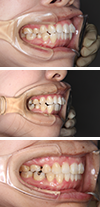 矯正治療中も安定した顎位を保つため、8か月間スプリントを装着しながら矯正治療を行った。開咬の改善に対してはアンカースクリューを用い、安定した緊密な咬合が獲得された。